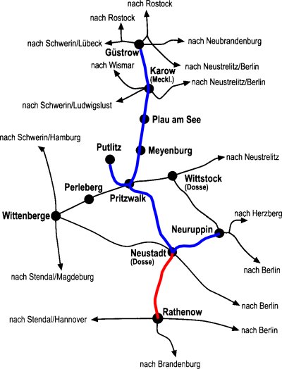 auf der Strecke Neustadt - Pritzwalk wieder in Rosenwinkel aus- und einsteigen.